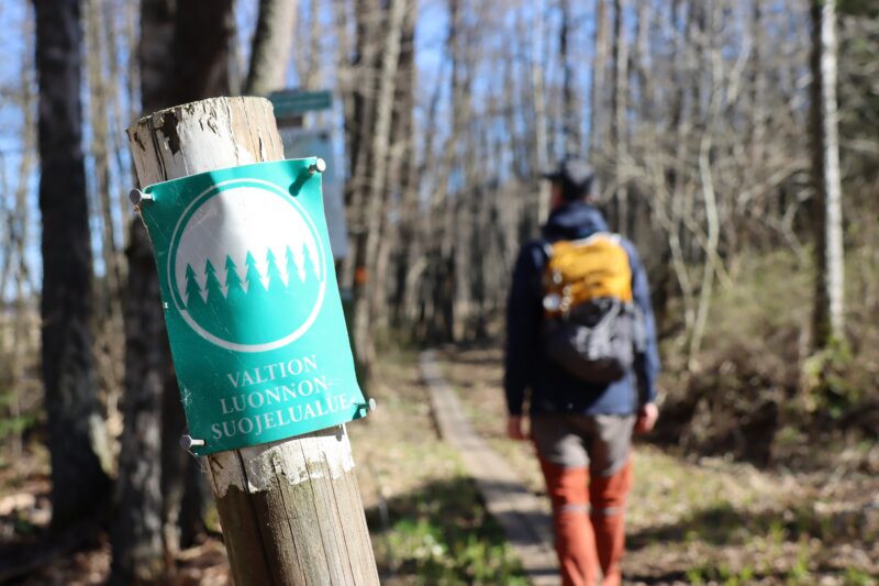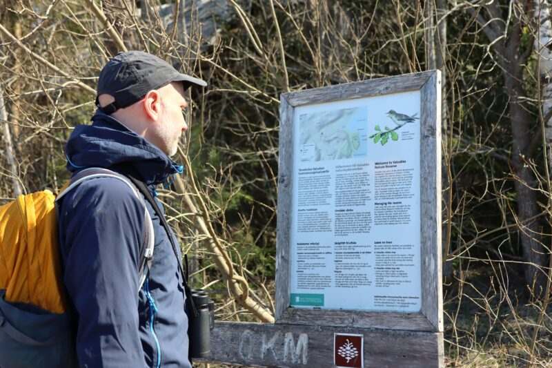 Pysäköintipaikalla opastaulu johtaa oikean reitin varrelle.