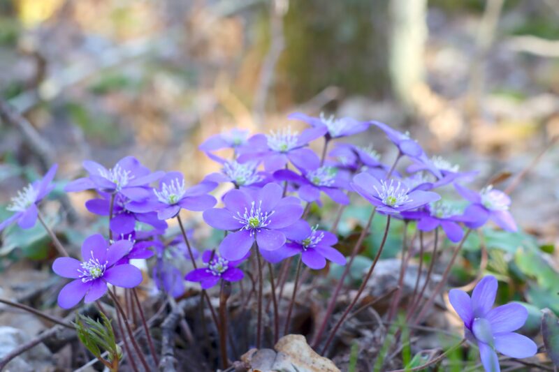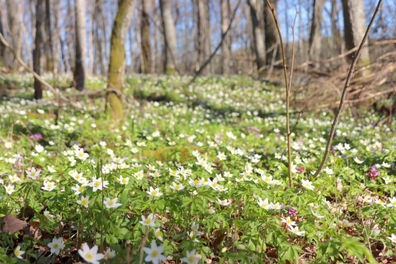 Alkukeväästä puut ovat vielä lehdettömiä, mutta aluskasvillisuus on sitäkin kukkeampaa.