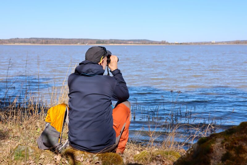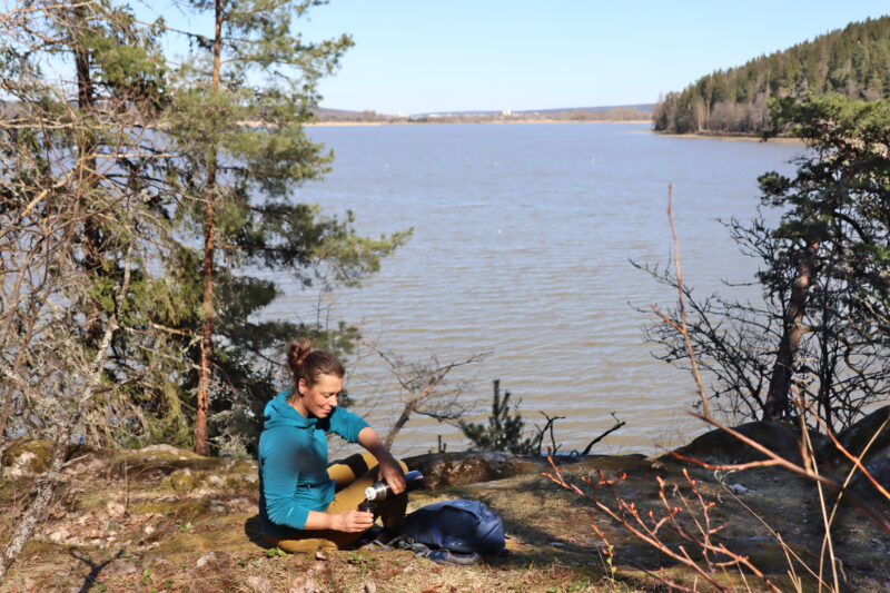Vaikka Vaisakko on muutaman tunnin retkikohde, istahdamme polulta syrjään Halikonlahden rantakallioille taukoa pitämään ennen paluumatkaa. Kiikaroimme hetken Halikonlahden lintujen elämää todetaksemme, että naurulokit ovat palanneet Suomeen sankoin joukoin.