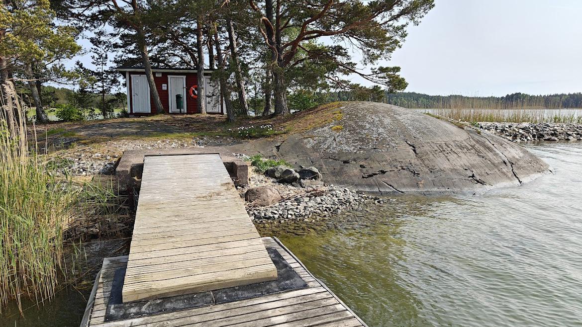 Hiekkaranta on leppeä sopukka viettaa rauhaisaa kesäpäivää pientenkin lasten kanssa, Enemmän toimintaa kaipaaville löytyy paikka edempää. Jatka kulkua polkua pitkin kohti ohuen niemen kärkeä. Uimalaituri löytyy pukukoppia vastapäätä, ja vielä lyhyen pengertien ja puusillan ylitettyäsi voit kiivetä pyöreäpäiselle kalliolle, jonka otsalta löydät sekä hyppytornin että portaat veteen.